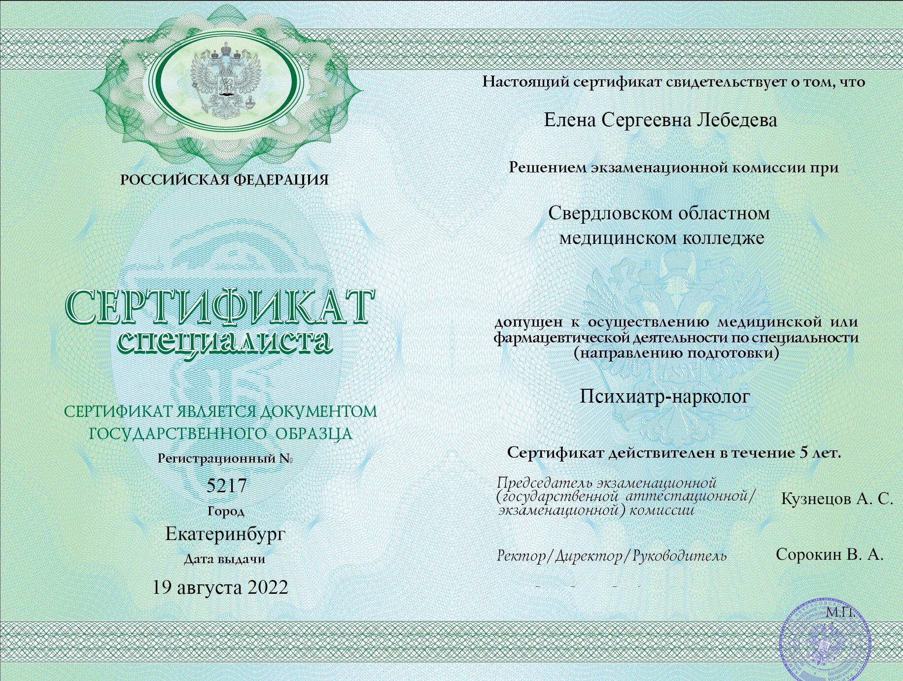 Елена Сергеевна Лебедева врач нарколог клиники доктора Стукаловой в Сарапуле